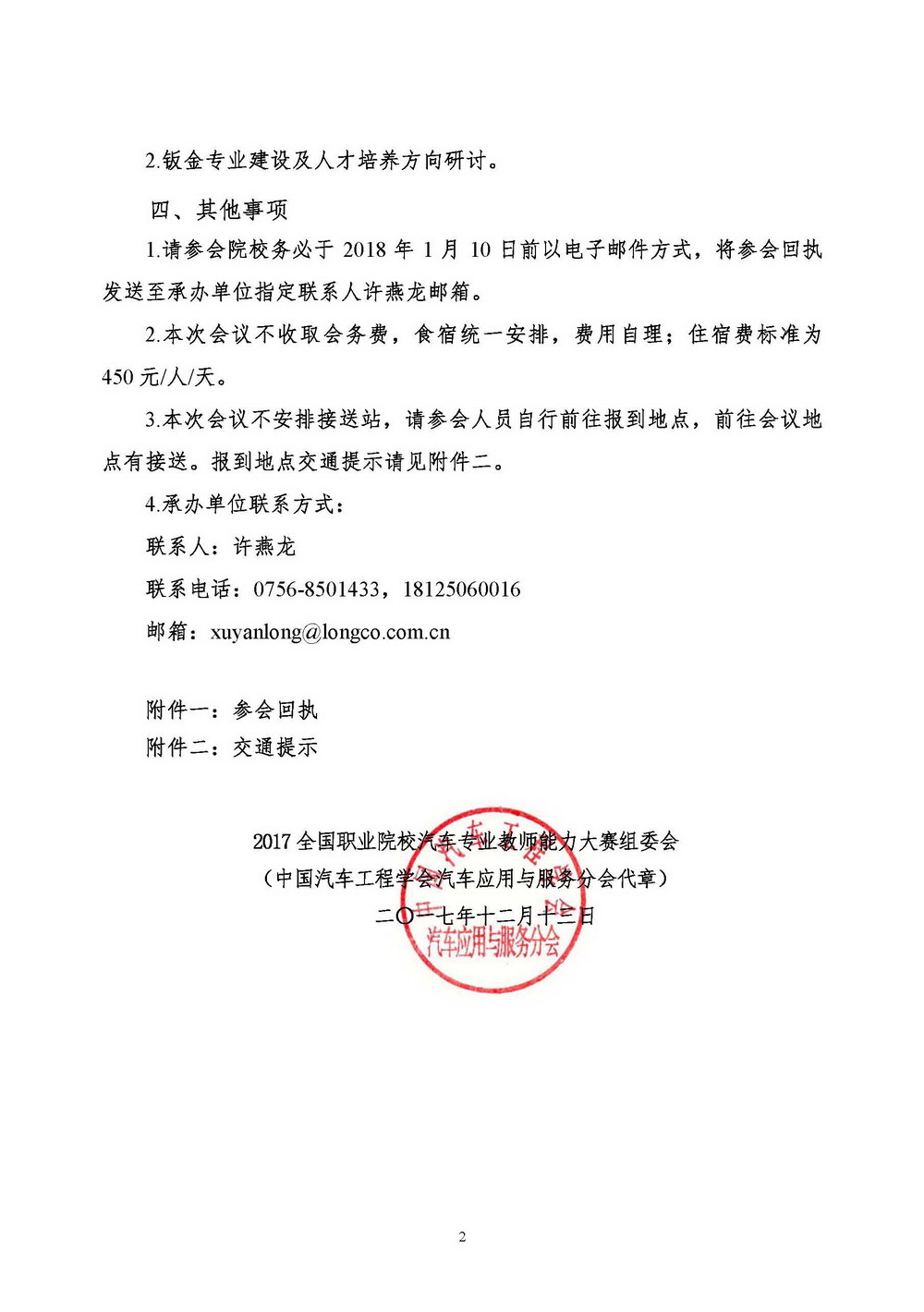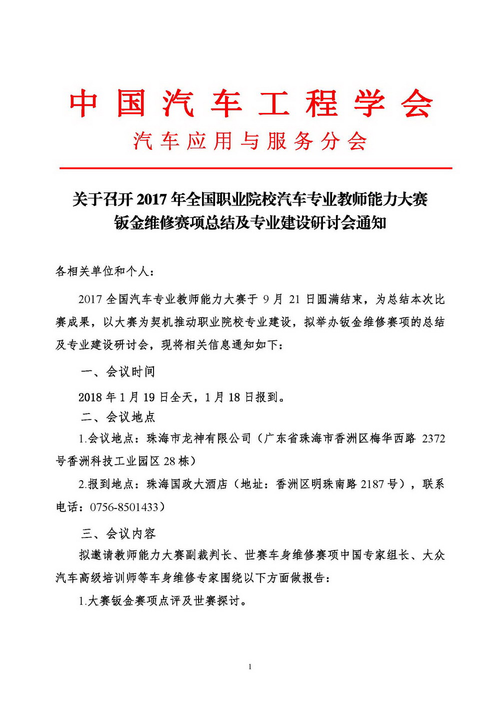 關于召開2017年全國職業(yè)院校汽車專業(yè)教師能力大賽鈑金維修賽項總結(jié)及專業(yè)建設研討會通知 2017年教師能力大賽鈑金維修賽項研討會通知(1).pdf 2017年鈑金賽項總結(jié)會議回執(zhí).docx 2017-12-14 20517
