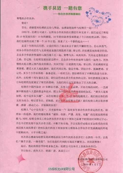 龍神合作伙伴昆明松騁的虎年祝福與感謝信