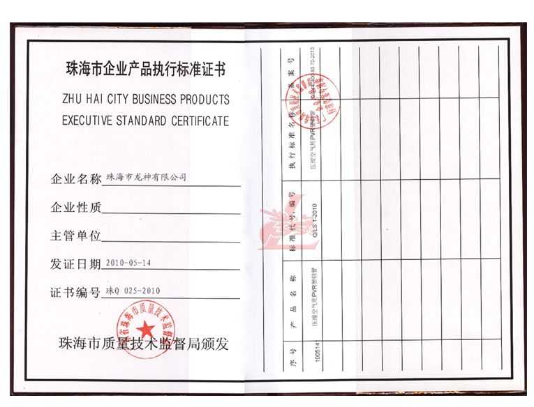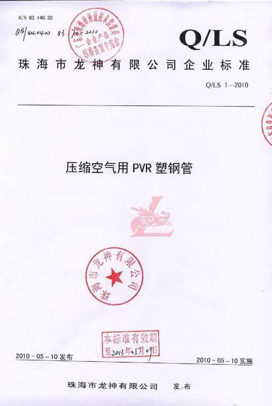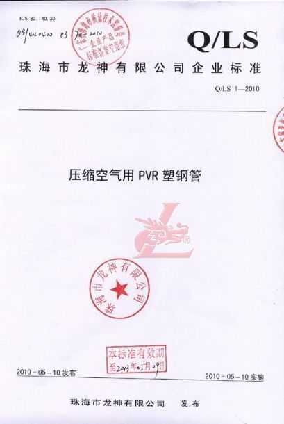 龍神壓縮空氣PVR塑鋼管成功申請(qǐng)企業(yè)執(zhí)行標(biāo)準(zhǔn) 2010年5月珠海市龍神有限公司“壓縮空氣PVR塑鋼管”得到珠海市質(zhì)量技術(shù)監(jiān)督局認(rèn)可,特此頒發(fā)“壓縮空氣PVR塑鋼管企業(yè)執(zhí)行標(biāo)準(zhǔn)”,龍神公司在嚴(yán)格執(zhí)行標(biāo)準(zhǔn)下,保證產(chǎn)品質(zhì)量。 2010-05-20 9751